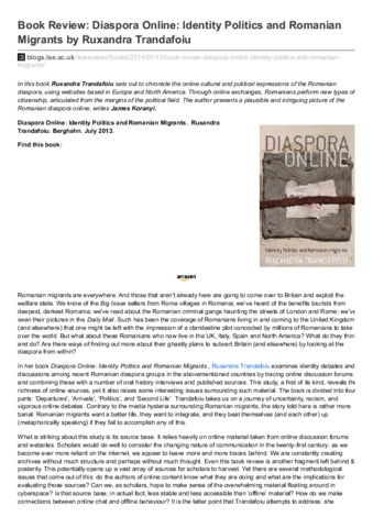 Book review: diaspora online: identity politics and Romanian migrants by Ruxandra Trandafoiu