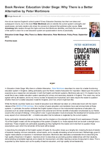 Book review: education under siege: why there is a better alternative by Peter Mortimore