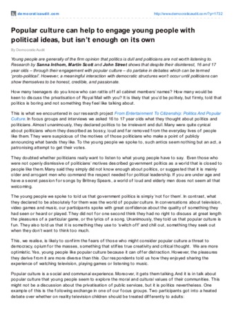 Popular culture can help to engage young people withpolitical ideas, but isn’t enough on its own