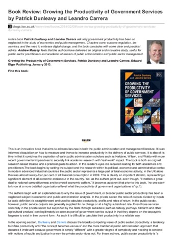 Book Review: growing the productivity of government services by Patrick Dunleavy and Leandro Carrera