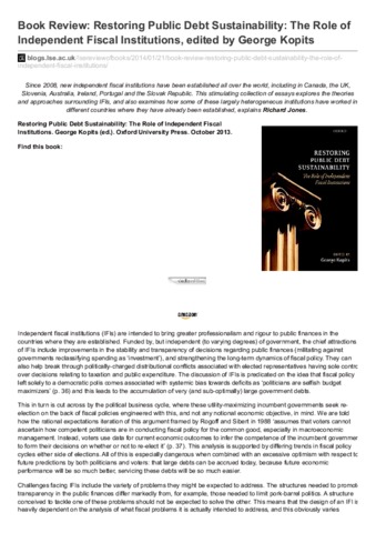 Book review: Restoring public debt sustainability: the role of independent fiscal institutions, edited by George Kopits