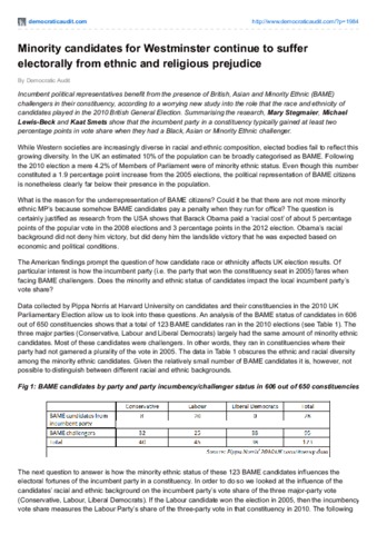Minority candidates for Westminster continue to suffer electorally from ethnic and religious prejudice