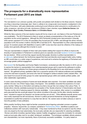The prospects for a dramatically more representative Parliament post 2015 are bleak