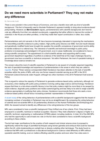 Do we need more scientists in Parliament? They may not make any difference