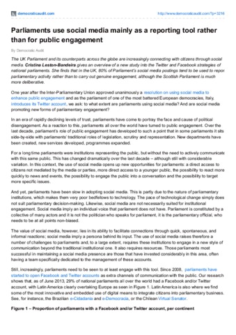 Parliaments use social media mainly as a reporting tool rather than for public engagement