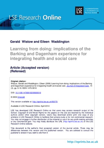 Learning from doing: implications of the Barking and Dagenham experience for integrating health and social care