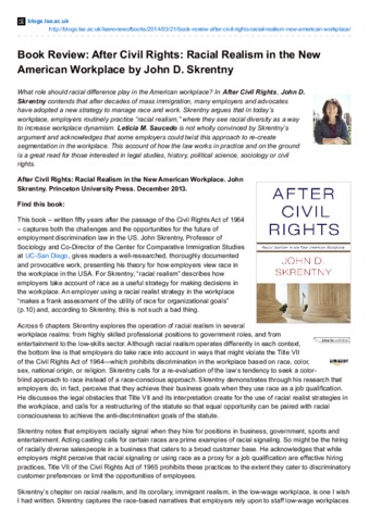Book review: After civil rights: racial realism in the new American workplace by John D. Skrentny