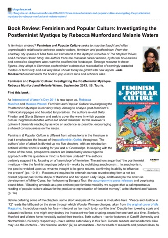 Book review: Feminism and popular culture: investigating the postfeminist mystique by Rebecca Munford and Melanie Waters
