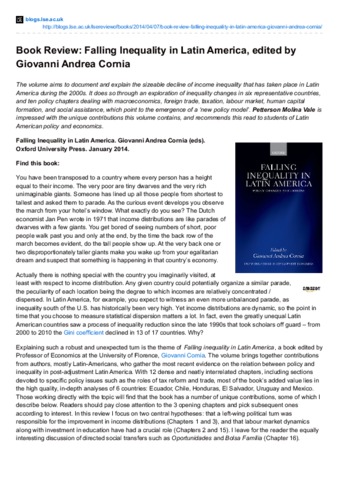 Book review: falling inequality in Latin America, edited byGiovanni Andrea Cornia