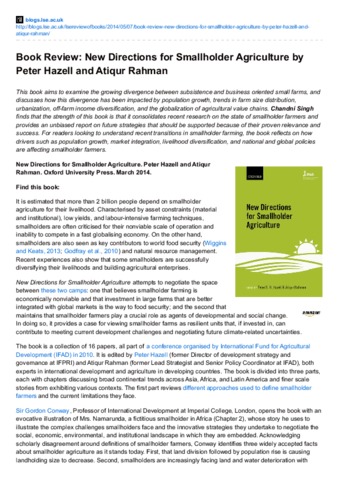 Book review: new directions for smallholder agriculture by Peter Hazell and Atiqur Rahman