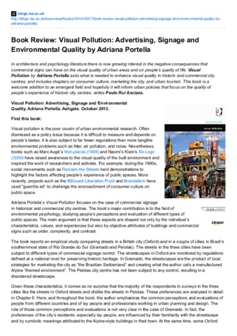 Book review: visual pollution: advertising, signage and environmental quality by Adriana Portella.