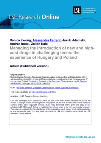 | Keywords | pharmaceutical cost containment,risk-sharing schemes,innovative medicines,Hungary,Poland |