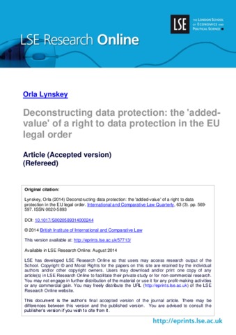 Deconstructing data protection: the 'Added-value' of a right to data protection in the EU legal order
