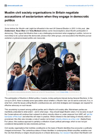 Muslim civil society organisations in Britain negotiate accusations of sectarianism when they engage in democratic politics