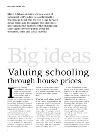 Steve Gibbons describes how a series of influential CEP studies has confirmed the widespread belief that there is a link between house prices and the quality of local schools –and explains the nuances of the findings and their significance for public policy for education, cities and social mobility.