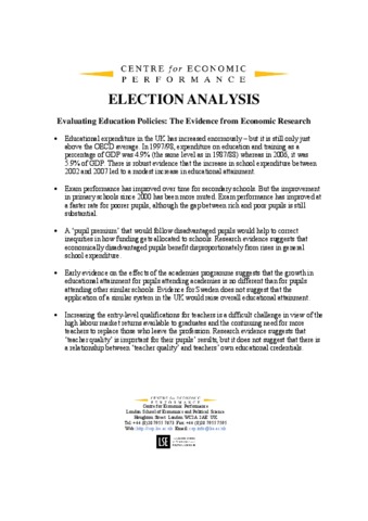 The latest CEP Election Analysis gives an overview of the research evidence on education policy, one of the key battlegrounds of the 2010 General Election.