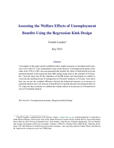Assessing the welfare effects of unemployment benefits using the regression kink design