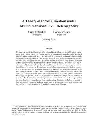 We develop a unifying framework for optimal income taxation in multi-sector economies with general patterns of externalities. Agents in this model are characterized by an N-dimensional skill vector corresponding to intrinsic abilities in N potentially externality-causing activities. The private return to each activity depends on individual skill and an aggregate activity-specific return, which is a fully general function of the economy-wide distribution of activity-specific efforts. We show that the N dimensional heterogeneity can be collapsed to a one-dimensional, endogenous statistic sufficient for screening. The optimal tax schedule features a multiplicative income specific correction to an otherwise standard tax formula. Because externalities change the relative returns to different activities, corrective taxes induce changes in the across activity allocation of effort. These relative return effects cause the optimal correction to diverge, in general, from the Pigouvian tax that would align private and social returns. We characterize this divergence and its implications for the shape of the tax schedule both generally and in a number of applications, including externality free economies, increasing and decreasing returns to scale, zero-sum activities such as bargaining or rent extraction, and positive or negative spillovers.