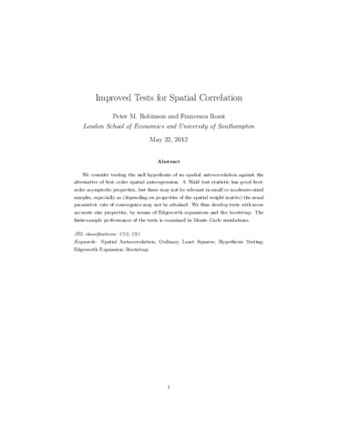 | Keywords | spatial autocorrelation,ordinary least squares,hypothesis testing,edgeworth expansion,bootstrap |