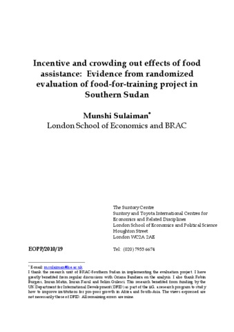 | Keywords | food assistance, incentive, crowding-out, Southern Sudan |