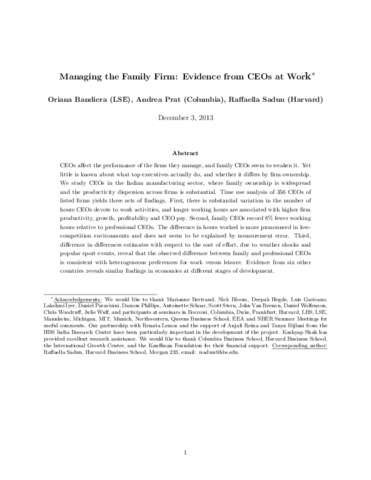 CEOs affect the performance of the firms they manage, and family CEOs seem to weaken it. Yet little is known about what top executives actually do, and whether it differs by firm ownership. We study CEOs in the Indian manufacturing sector, where family ownership is widespread and the productivity dispersion across firms is substantial. Time use analysis of 356 CEOs of listed firms yields three sets of findings. First, there is substantial variation in the number of hours CEOs devote to work activities, and longer working hours are associated with higher firm productivity, growth, profitability and CEO pay. Second, family CEOs record 8% fewer working hours relative to professional CEOs. The difference in hours worked is more pronounced in low competition environments and does not seem to be explained by measurement error. Third, difference in diffrences estimates with respect to the cost of effort, due to weather shocks and popular sport events, reveal that the observed difference between family and professional CEOs is consistent with heterogeneous preferences for work versus leisure. Evidence from six other countries reveals similar findings in economies at different stages of development.