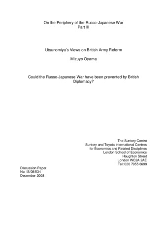 This discussion paper is a continuation of the two previous pamphlets which appeared under the title, ‘On the Periphery of the Russo-Japanese war’. A special symposium on this topic was held in the Morishima Room on 8 March 2008. The first paper is by Mrs Oyama, a researcher on Anglo-Japanese relations who is currently co-operating in a project to publish the papers of General Taro UTSUNOMIYA, the Japanese military attache in London, 1901-5. Utsunomiya observes the plight of the British army after the South African war and takes part in the debate in army circles about introducing universal military service. The second paper deals with the controversial topic of whether Japan went to war with Russia in 1904 because of her own national interest or was pushed into the war by her ally, Britain. It answers the question in the negative and argues that the British government were maintaining a policy of neutrality, both before and during the war. The paper was presented at the Fifty Year Anniversary Conference of Kokusai Seiji Gakkai (Japanese Association for International Relations, JAIR) which was held at Kisarazu, Japan in October 2006. It has already appeared in Japanese translation.