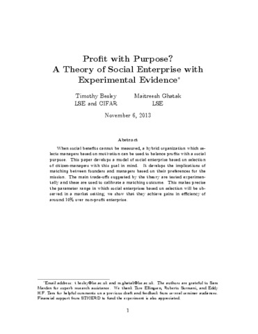 Profit with purpose? a theory of social enterprise with experimental evidence