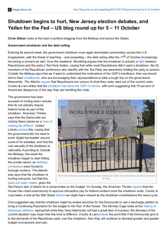 Shutdown begins to hurt, New Jersey election debates, and Yellen for the Fed – US blog round up for 5 – 11 October