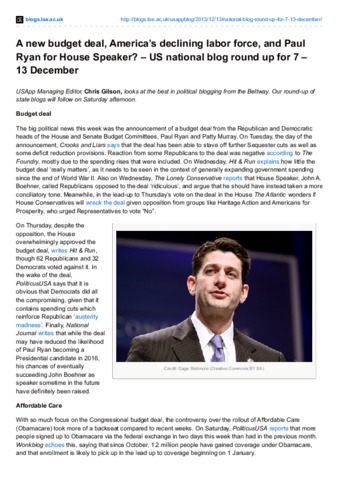 A new budget deal, America’s declining labor force, and Paul Ryan for House Speaker? – US national blog round up for 7 – 13 December