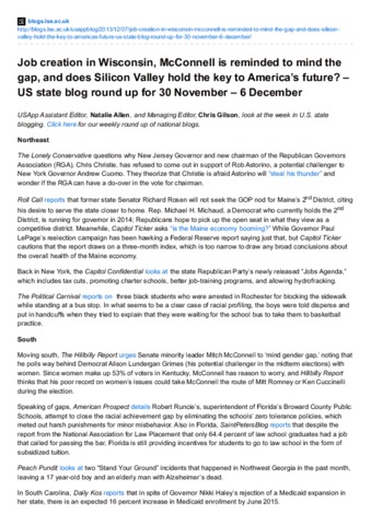 Job creation in Wisconsin, McConnell is reminded to mind the gap, and does Silicon Valley hold the key to America’s future? – US state blog round up for 30 November – 6 December