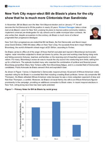 In November, Bill de Blasio won the New York Mayoral election and on January 1st, he will become the first Democrat to fill the position in nearly 20 years. Richard Flanagan takes a close look at de Blasio’s vision for New York, praising his plans to improve police-community relations, implement universal pre-kindergarten for city schools and to settle municipal labor contracts. He also writes that, despite accusations to the contrary, de Blasio is much more of a liberal pragmatist than progressive ideologue.