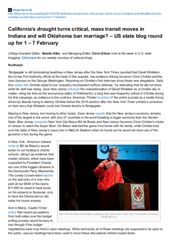 California’s drought turns critical, mass transit moves in Indiana and will Oklahoma ban marriage? – US state blog round up for 1 – 7 February.