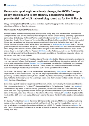 Democrats up all night on climate change, the GOP’s foreign policy problem, and is Mitt Romney considering another presidential run? – US national blog round up for 8 – 14 March