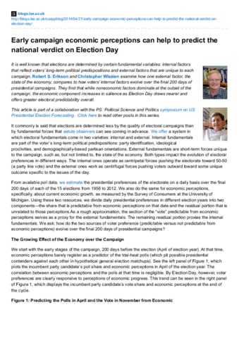 Early campaign economic perceptions can help to predict the national verdict on Election Day