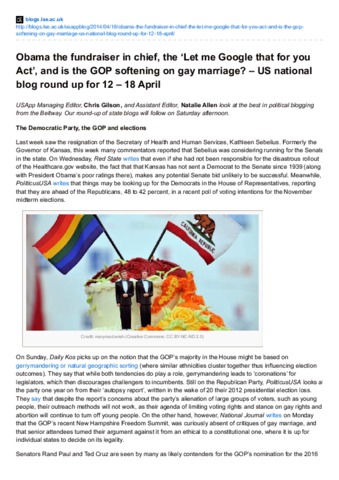 Obama the fundraiser in chief, the ‘Let me Google that for you Act’, and is the GOP softening on gay marriage? – US national blog round up for 12 – 18 April.