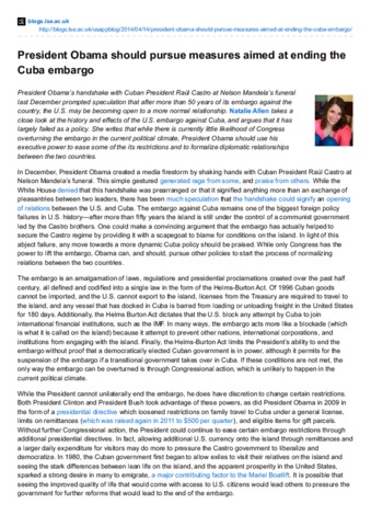 President Obama should pursue measures aimed at ending the Cuba embargo