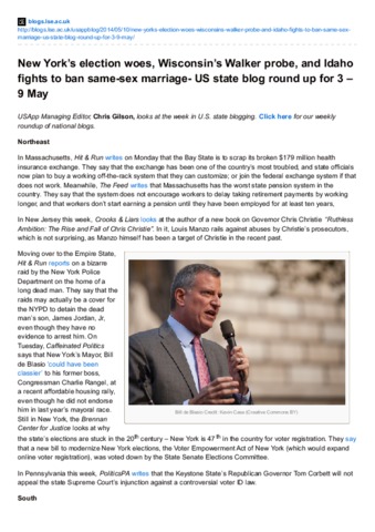 New York’s election woes, Wisconsin’s Walker probe, and Idaho fights to ban same-sex marriage- US state blog round up for 3 – 9 May.