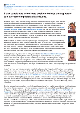 Black candidates who create positive feelings among voters can overcome implicit racist attitudes