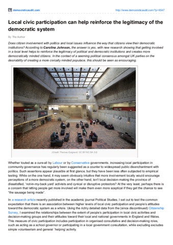 Local civic participation can help reinforce the legitimacy of the democratic system