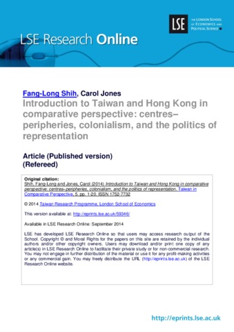 Introduction to Taiwan and Hong Kong in comparative perspective: centres–peripheries, colonialism, and the politics of representation