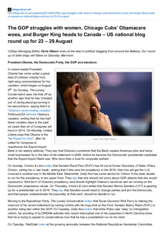 The GOP struggles with women, Chicago Cubs’ Obamacarewoes, and Burger King heads to Canada – US national bloground up for 23 – 29 August