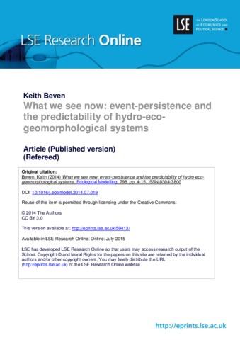 What we see now: event-persistence and the predictability of hydro-eco-geomorphological systems