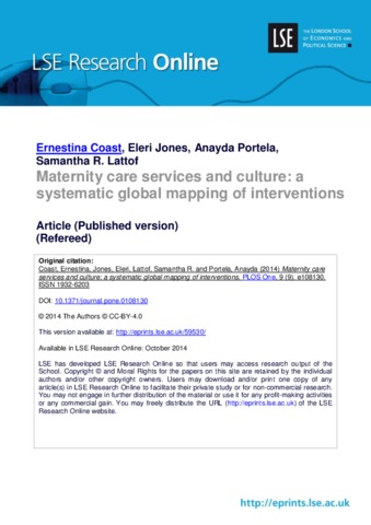 Background A vast body of global research shows that cultural factors affect the use of skilled maternity care services in diverse contexts. While interventions have sought to address this issue, the literature on these efforts has not been synthesised. This paper presents a systematic mapping of interventions that have been implemented to address cultural factors that affect women's use of skilled maternity care. It identifies and develops a map of the literature; describes the range of interventions, types of literature and study designs; and identifies knowledge gaps. Methods and Findings Searches conducted systematically in ten electronic databases and two websites for literature published between 01/01/1990 and 28/02/2013 were combined with expert-recommended references. Potentially eligible literature included journal articles and grey literature published in English, French or Spanish. Items were screened against inclusion and exclusion criteria, yielding 96 items in the final map. Data extracted from the full text documents are presented in tables and a narrative synthesis. The results show that a diverse range of interventions has been implemented in 35 countries to address cultural factors that affect the use of skilled maternity care. Items are classified as follows: (1) service delivery models; (2) service provider interventions; (3) health education interventions; (4) participatory approaches; and (5) mental health interventions. Conclusions The map provides a rich source of information on interventions attempted in diverse settings that might have relevance elsewhere. A range of literature was identified, from narrative descriptions of interventions to studies using randomised controlled trials to evaluate impact. Only 23 items describe studies that aim to measure intervention impact through the use of experimental or observational-analytic designs. Based on the findings, we identify avenues for further research in order to better document and measure the impact of interventions to address cultural factors that affect use of skilled maternity care.