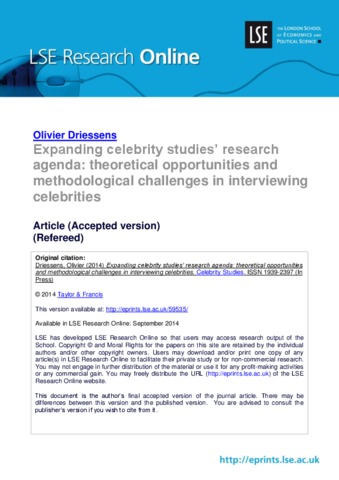 Expanding celebrity studies’ research agenda: theoretical opportunities and methodological challenges in interviewing celebrities