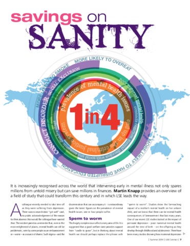 It is increasingly recognised across the world that intervening early in mental illness not only spares millions from untold misery but can save millions in finances. Martin Knapp provides an overview of a field of study that could transform this century and in which LSE leads the way.