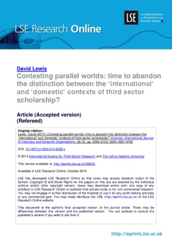 Contesting parallel worlds: time to abandon the distinction between the ‘international’ and ‘domestic’ contexts of third sector scholarship?