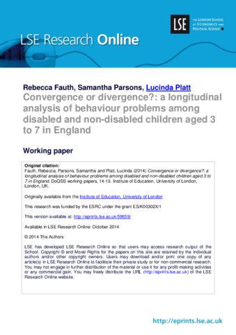 Convergence or divergence?: a longitudinal analysis of behaviour problems among disabled and non-disabled children aged 3 to 7 in England