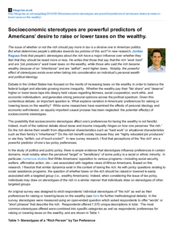 Socioeconomic stereotypes are powerful predictors of Americans’ desire to raise or lower taxes on the wealthy