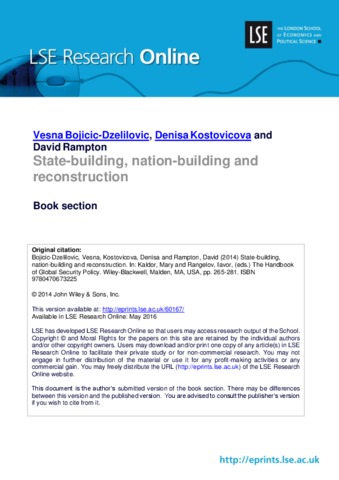 | Keywords | State-building,nation-building,post-war reconstruction,sovereignty,legitimacy,accountability,ownership,liberal peace |