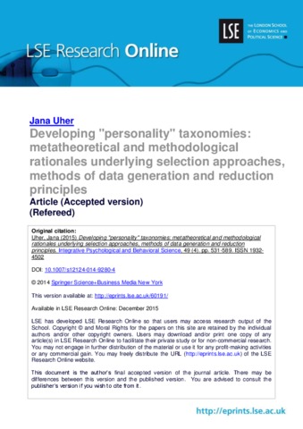 Developing "personality" taxonomies: metatheoretical and methodological rationales underlying selection approaches, methods of data generation and reduction principles
